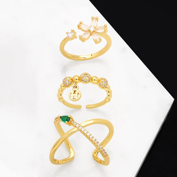 Bague ouverte en forme de fleur de diamant, style rétro léger, style géométrique, croix, style européen et américain, rir66
