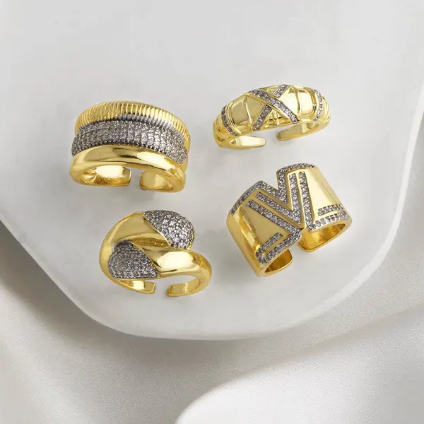 Bague ouverte en forme de V plaquée or, bijou tendance en Europe et aux États-Unis, bague bicolore polyvalente pour femme, rij88