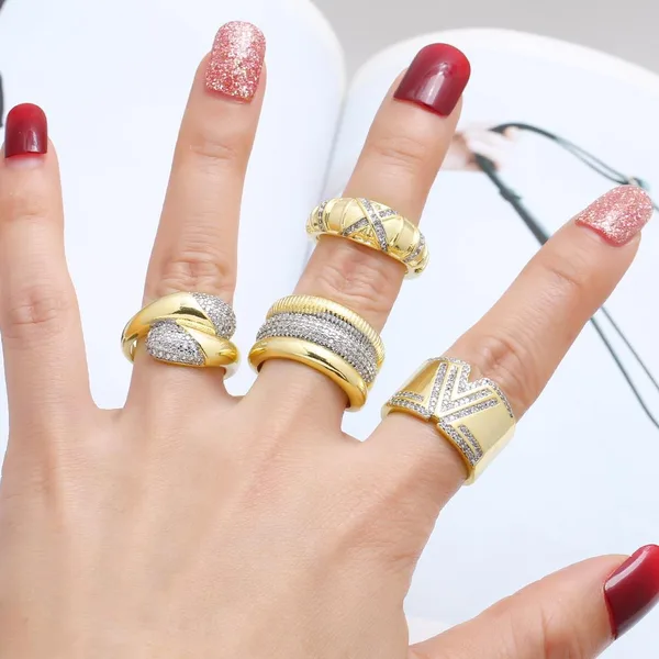 Bague de luxe européenne et américaine, bague en zircon œil de cheval à la mode, bague d'index à design creux multicouche