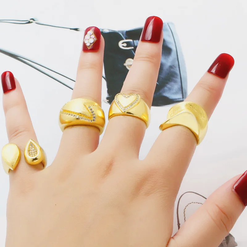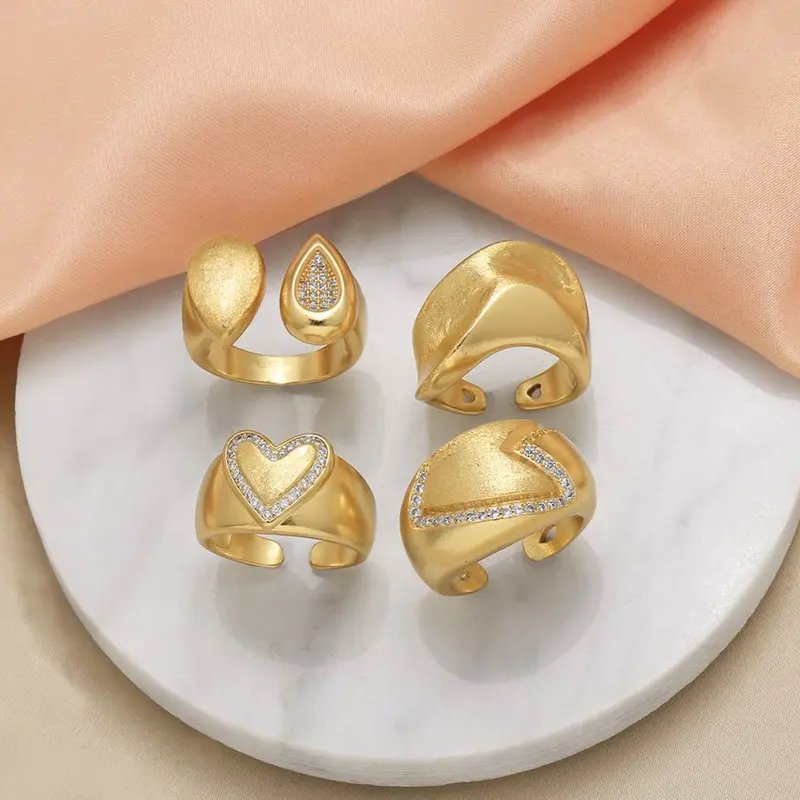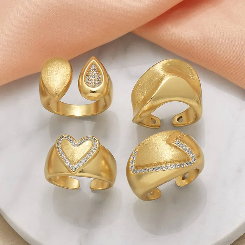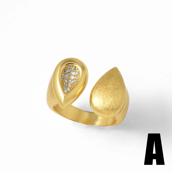 Bague ouverte en or 18 carats plaqué cuivre pour femme, bijou tendance, motif goutte d'eau, rip37ring