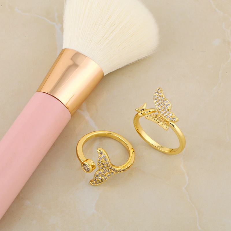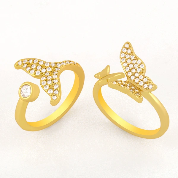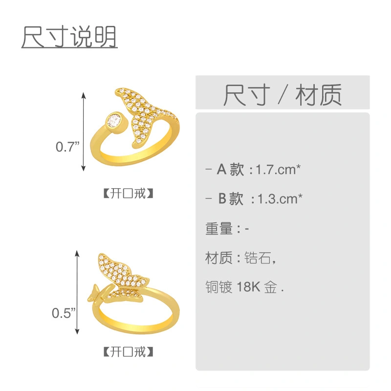 Bague ouverte en queue de poisson pour femme, accessoire de déstockage, avec micro-incrustations de zircons, style papillon, rij75