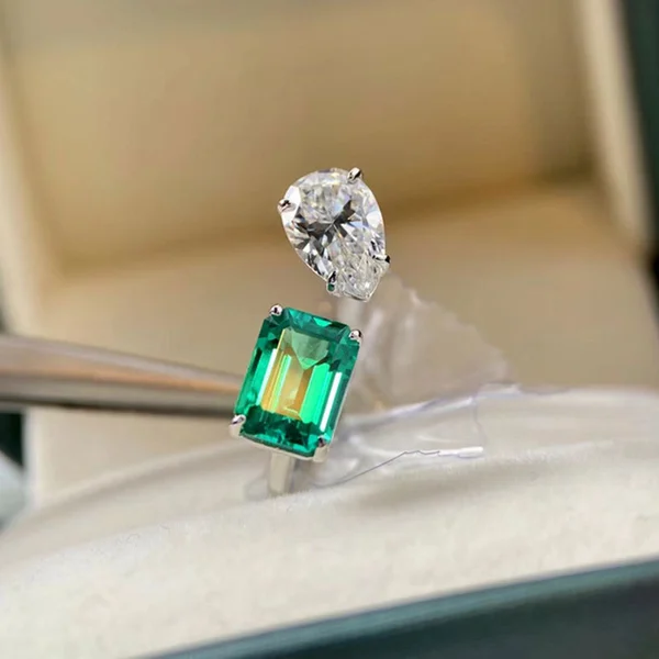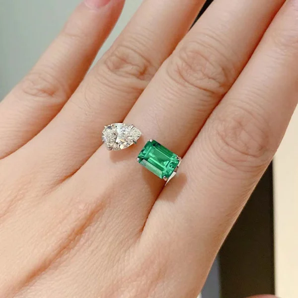Bague ouverte en tourmaline émeraude simulée pour femme, produit phare de la diffusion en direct de célébrités sur Internet