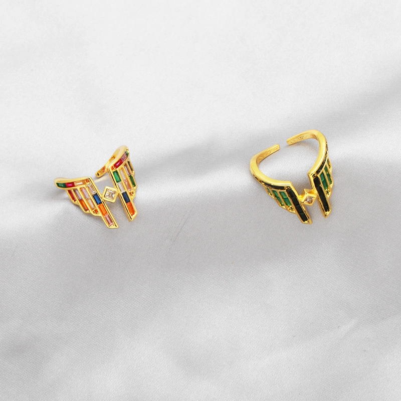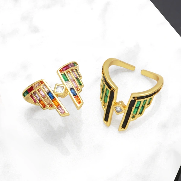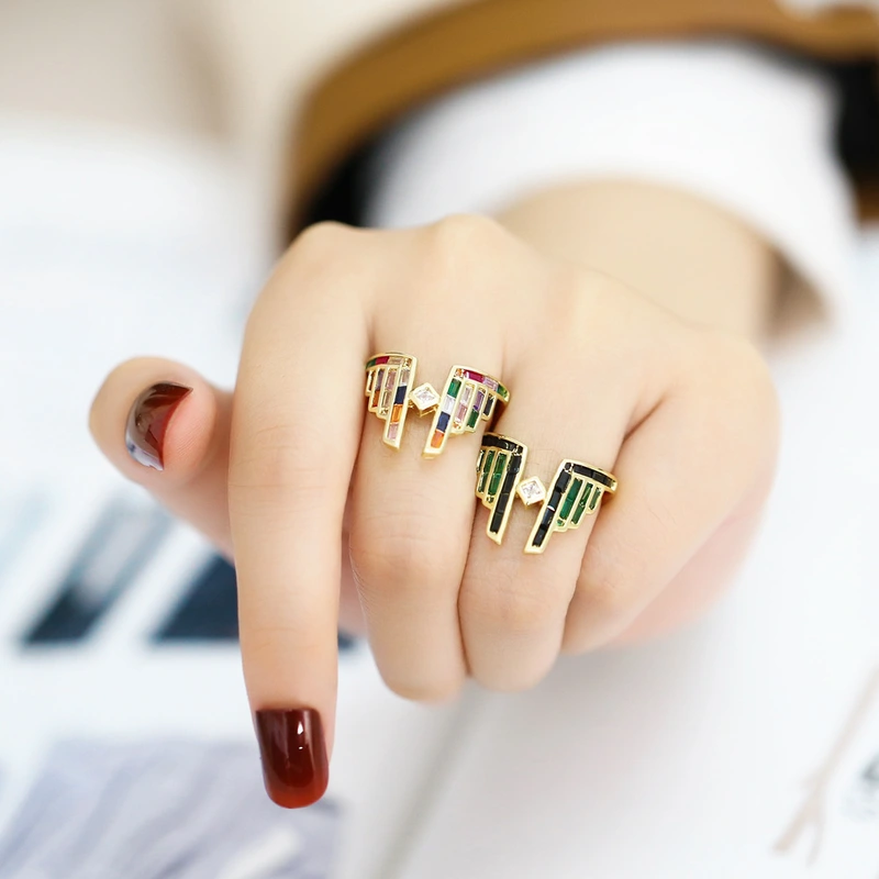 Bague ouverte en zircon coloré pour femme, bijou européen et américain, design créatif, réglable, pour index, rij34