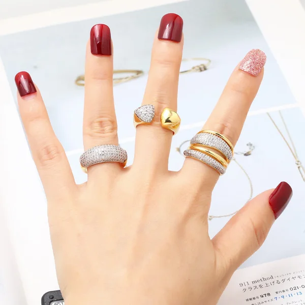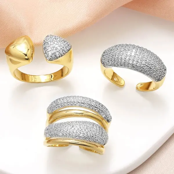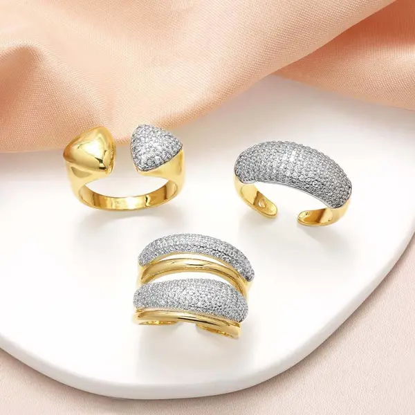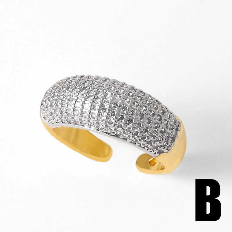 Bague ouverte en zircon plaqué or pour femme, bijou tendance en Europe et aux États-Unis, deux couleurs irrégulières, rih48