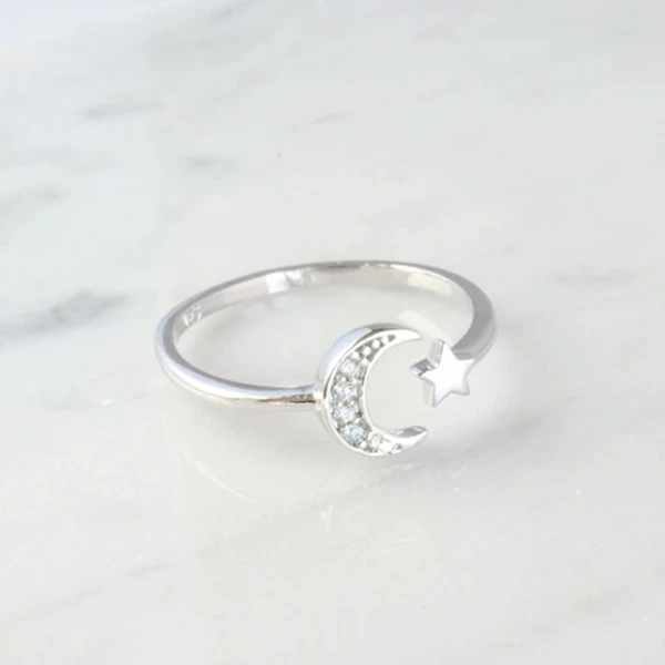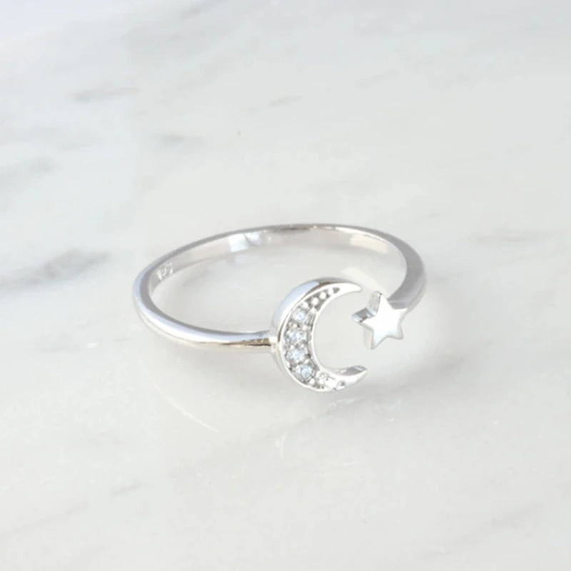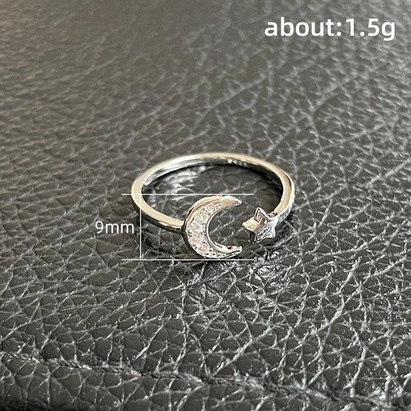 Bague ouverte étoile et lune haut de gamme pour femme, design de niche, bague de queue de personnalité, tempérament, luxe léger, bague d'index de célébrité Internet
