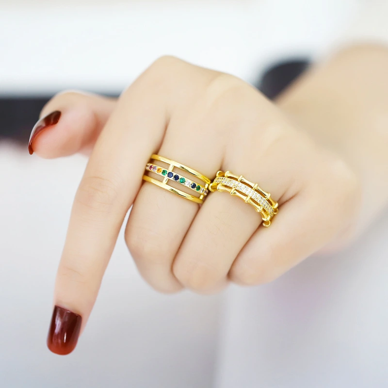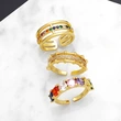 Bague ouverte géométrique en zircon coloré de style européen et américain pour femme, anneau de luxe léger, rij83
