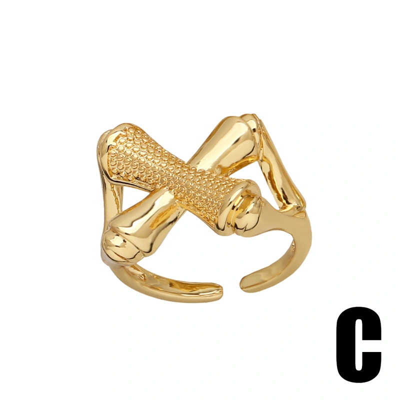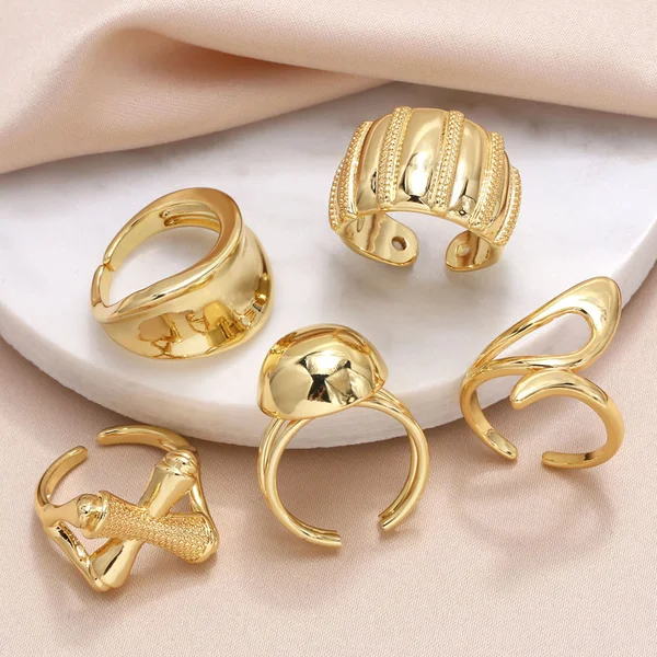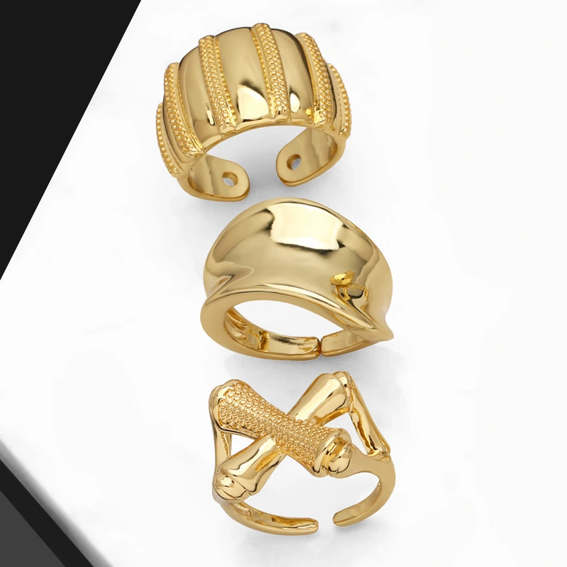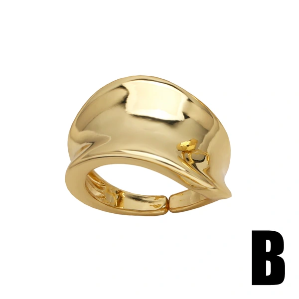 Bague ovale ouverte plaquée or, style européen et américain, style irrégulier et lisse, niche rétro, ris70