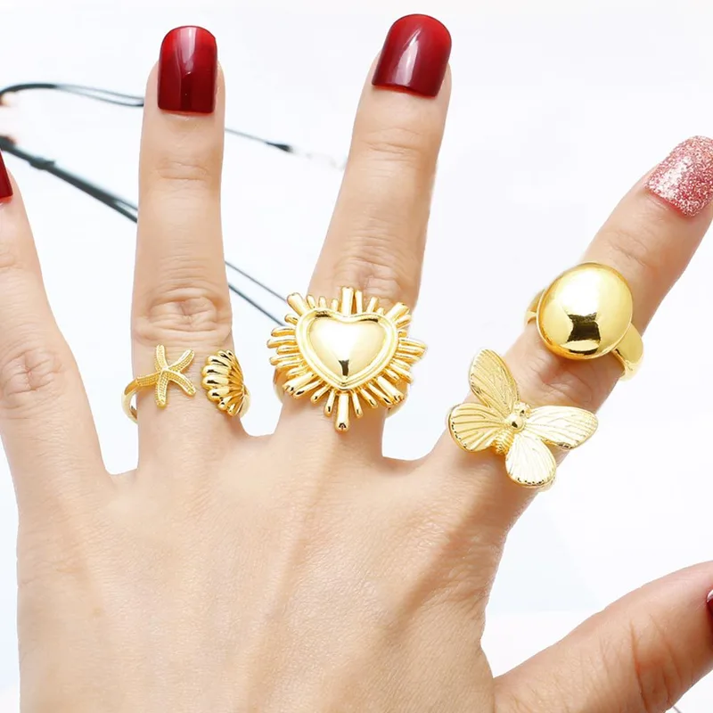 Bague papillon brillante plaquée or pour femme, bijou européen et américain, nouvelle collection, riq94