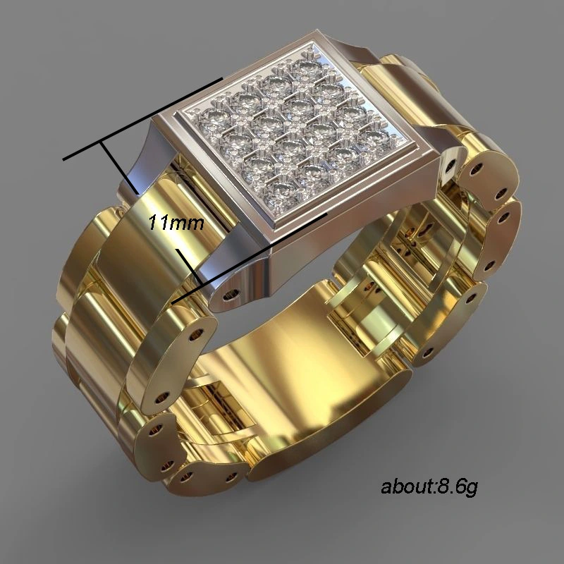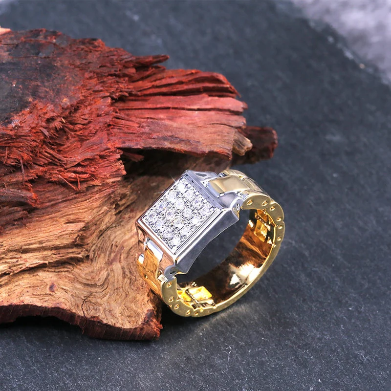 Bague pour homme, bracelet de montre en diamant et zirconium européen et américain, style hip-hop, créatif et tendance