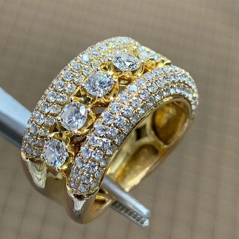 Bague de luxe européenne et américaine, bague en zircon œil de cheval à la mode, bague d'index à design creux multicouche