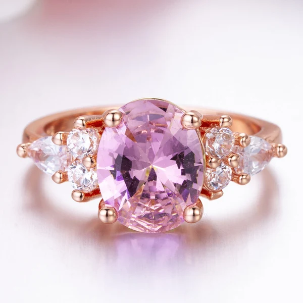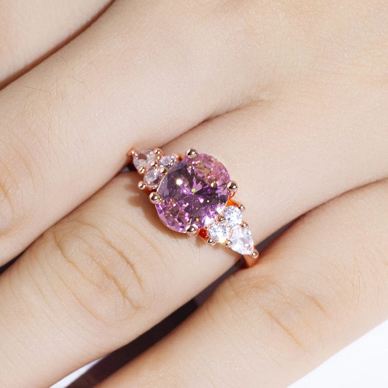 Bague princesse en cristal de diamant rose, nouvelle bague de fiançailles en diamant de simulation de forme ovale populaire européenne et américaine