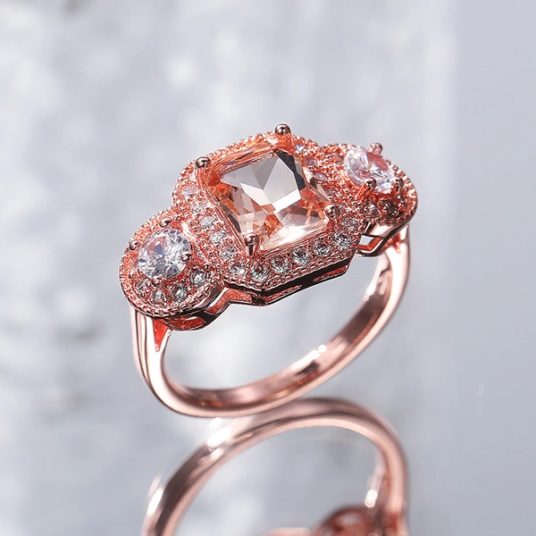 Bague princesse en or rose plaquée or rose avec diamants carrés et zircons, bijou tendance pour événements professionnels