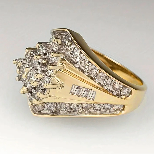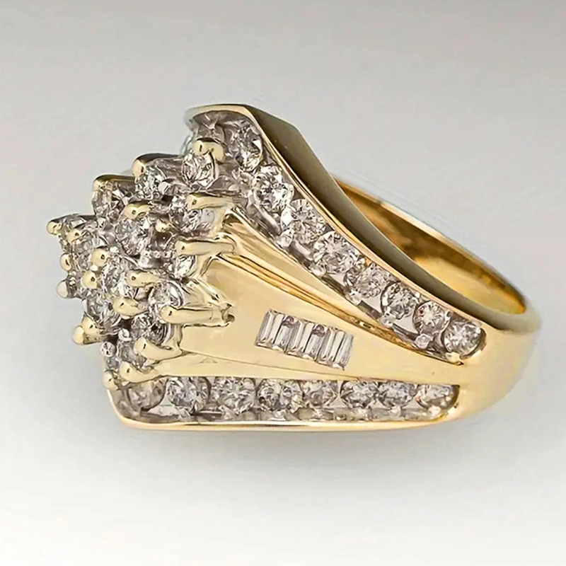 Bague de luxe européenne et américaine, bague en zircon œil de cheval à la mode, bague d'index à design creux multicouche