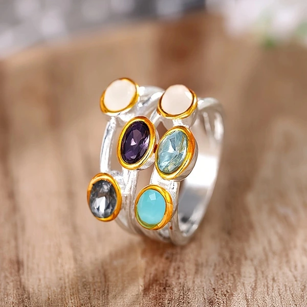 Bague rétro de luxe européenne et américaine, nouvelle conception de style palais, bijoux multicouches, bague ovale haut de gamme pour femmes