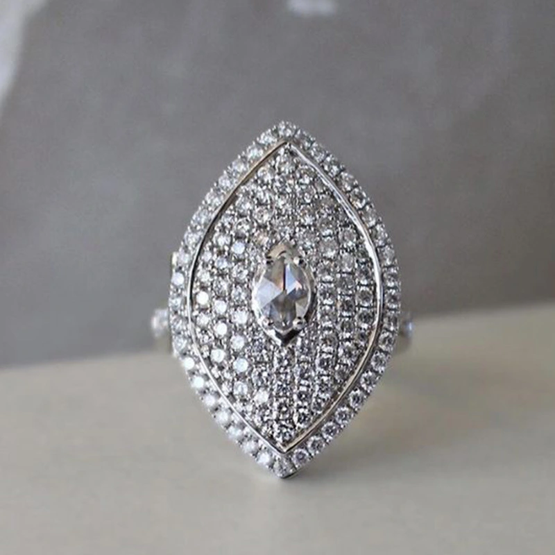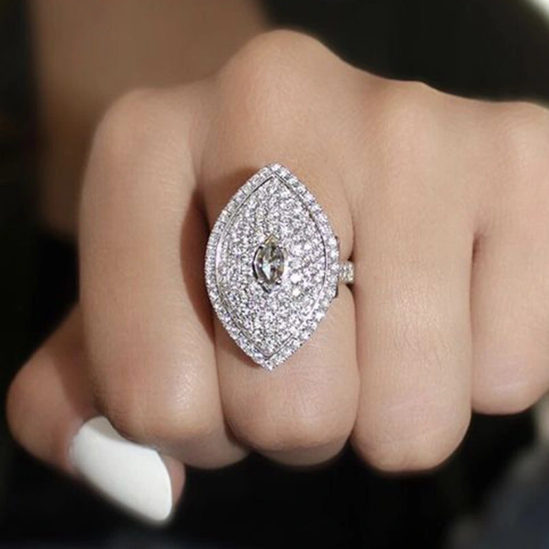 Bague de mariage en zircon brillant œil de cheval pour femme, bijou créatif en direct