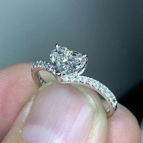 Bague simple en forme de cœur, tendance, index, amour, zircon, plaqué platine, pour femme