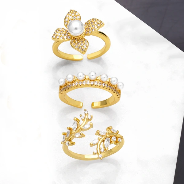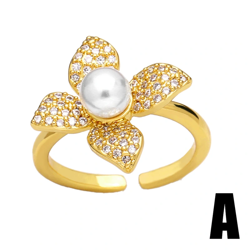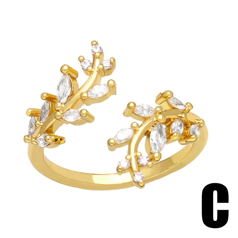 Bague simple en forme de feuille et de fleur pour femme, style européen et américain, avec perles en zircon, rir61