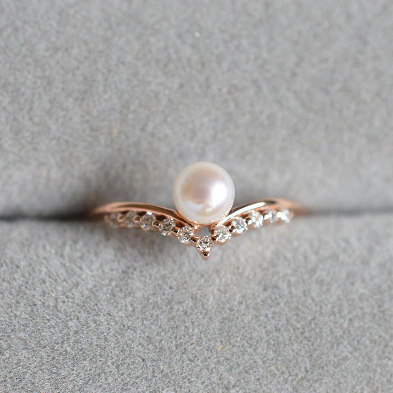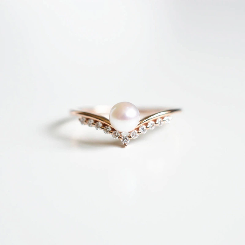 Bague simple en perles en forme de V, style européen et américain, pour femmes, vente directe d'usine, bague plaquée or rose, vente en gros