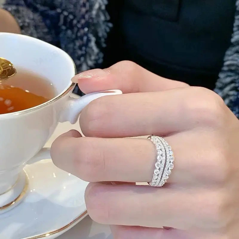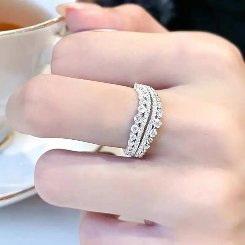 Bague de luxe européenne et américaine, bague en zircon œil de cheval à la mode, bague d'index à design creux multicouche