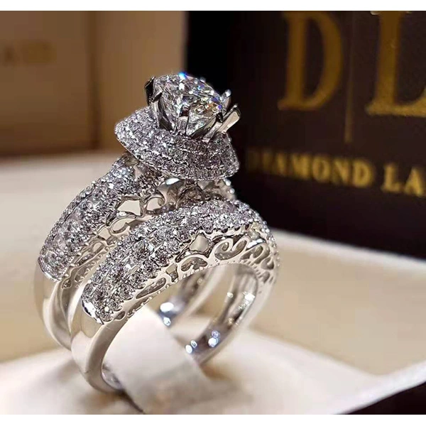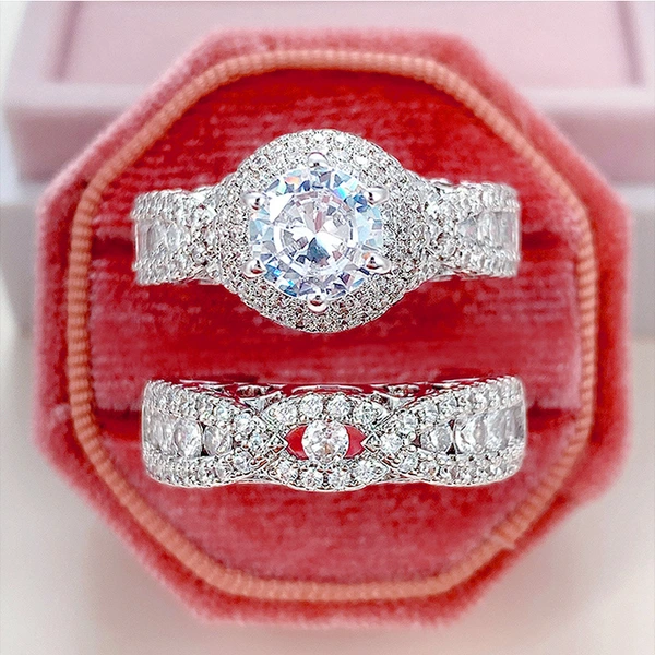 Bague Temu double couche en zircon micro-incrusté, bague de mariage de luxe européenne et américaine, design creux, double anneau