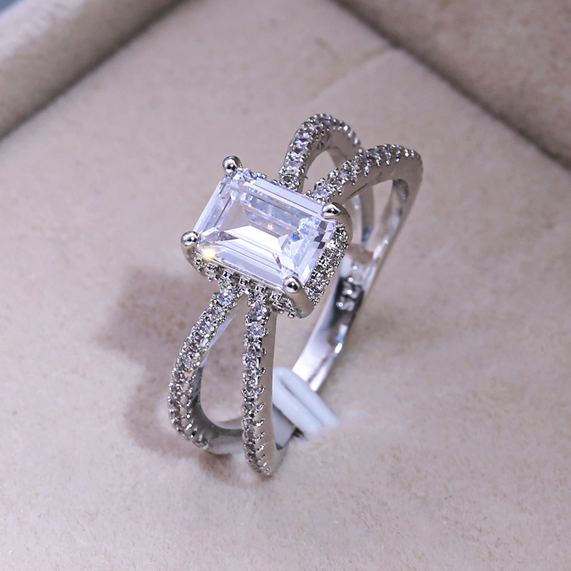 nouvelle bague en zircon creux croix quatre griffes design de mode proposition bague de mariage cadeau d'anniversaire bague