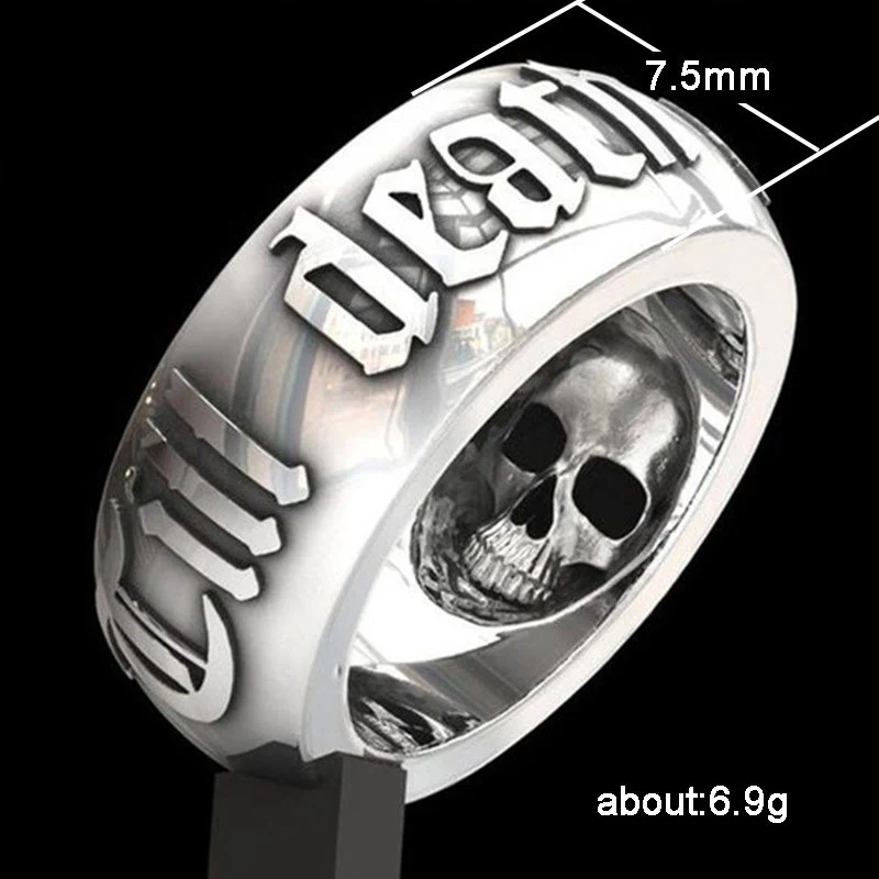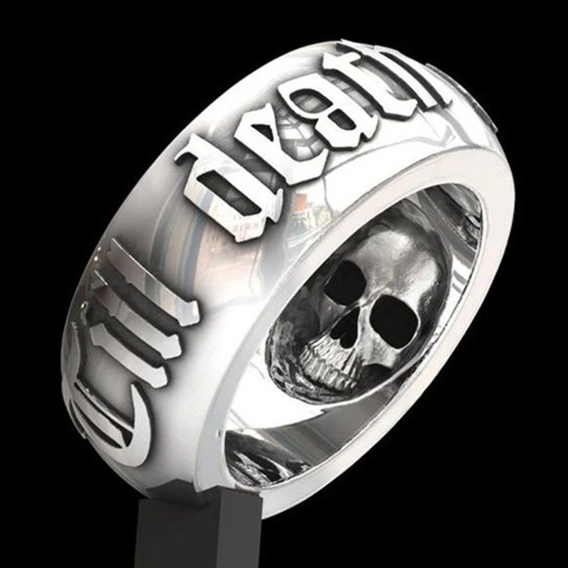 Bague tête de mort créative européenne et américaine, style punk rock, punk thaïlandais, argent noir