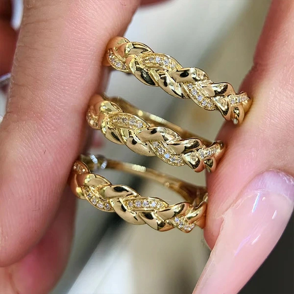 Bague tissée en croix russe incrustée de feuilles de zircon, bague tissée, bague atmosphérique pour femme