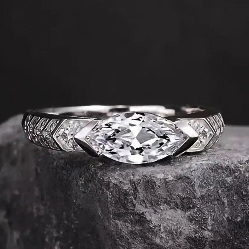 Bague de mariage en zircon brillant œil de cheval pour femme, bijou créatif en direct