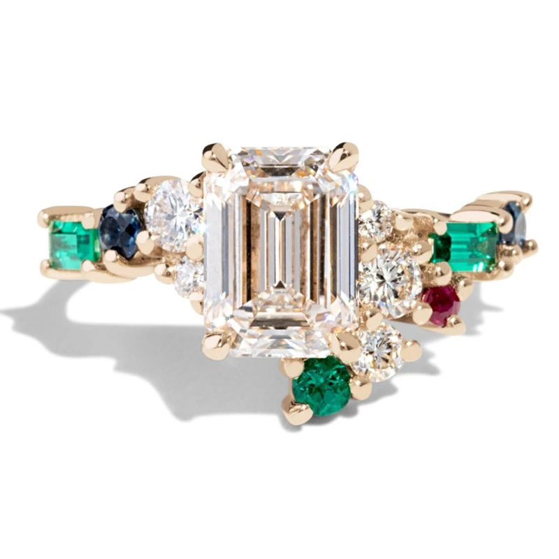 Bague de fiançailles princesse carrée, style européen et américain, incrustée de zircons, bijoux pour femmes