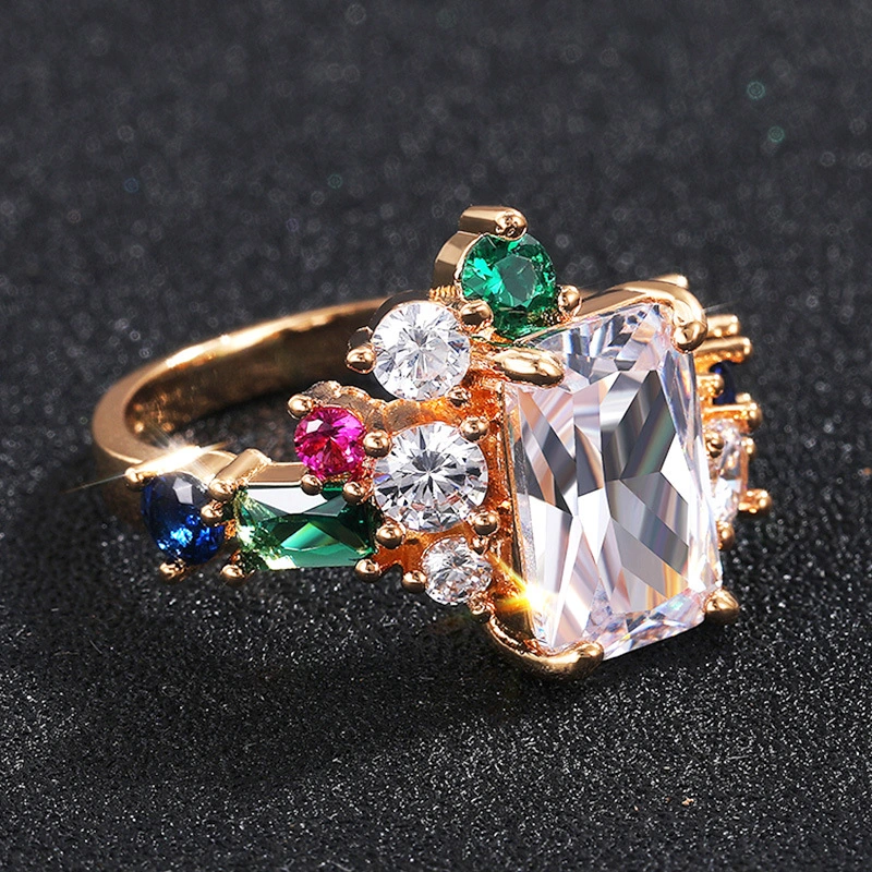 Bagues de luxe en zircon coloré pour femmes, bagues de fête plaquées argent, vente en gros de bijoux, européennes et américaines
