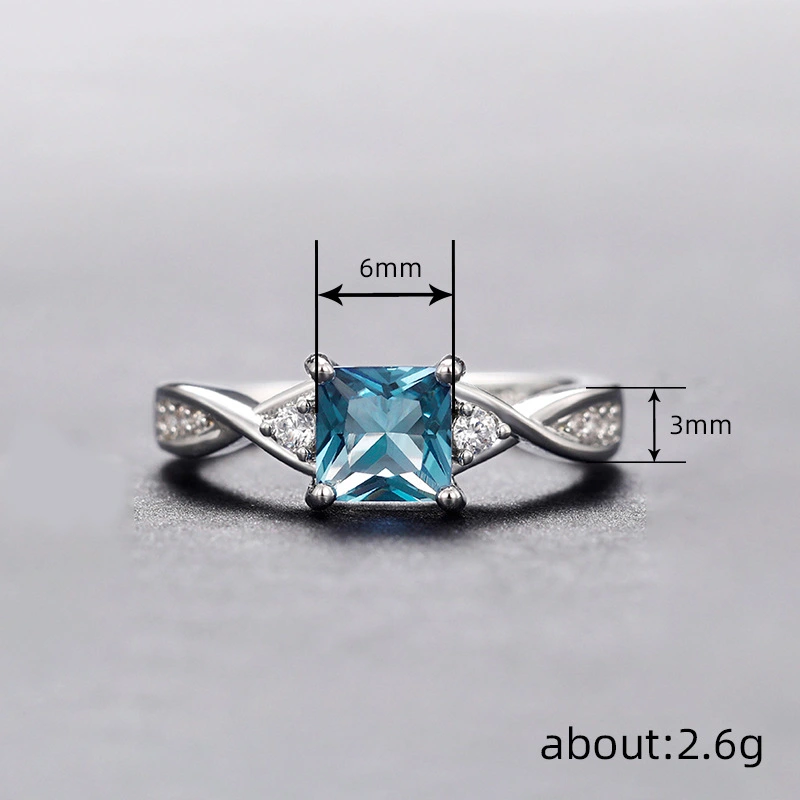 Bague de fiançailles princesse carrée, style européen et américain, incrustée de zircons, bijoux pour femmes