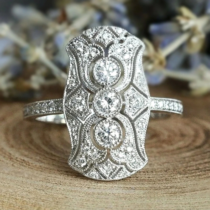 Bague de luxe européenne et américaine, bague en zircon œil de cheval à la mode, bague d'index à design creux multicouche