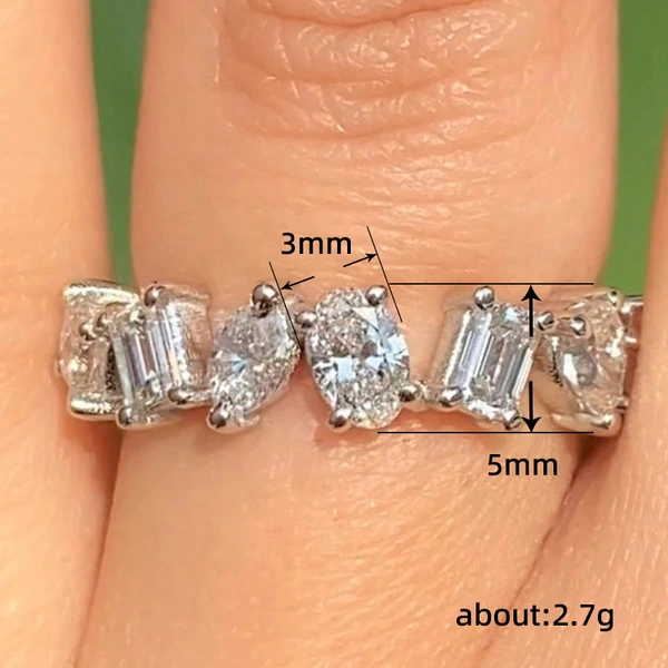 Bagues géométriques européennes et américaines pour femmes, style tendance et personnalisé en zircon, rangée de diamants en zircon, œil de cheval ovale carré