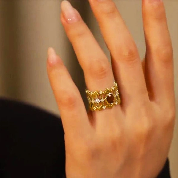 Bague de luxe européenne et américaine, bague en zircon œil de cheval à la mode, bague d'index à design creux multicouche