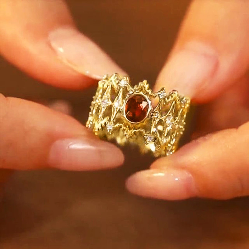 Petite couronne de luxe française, bague spéciale en forme de goutte d'eau, motif floral, motif princesse, index