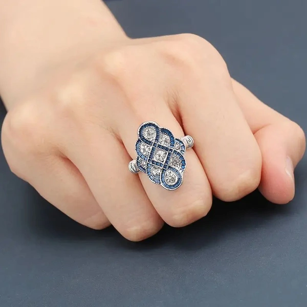 Bague de luxe européenne et américaine, bague en zircon œil de cheval à la mode, bague d'index à design creux multicouche