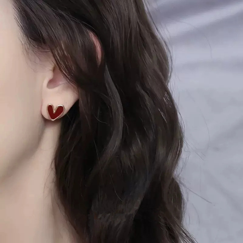petites et exquises boucles d'oreilles en forme de cœur rouge, boucles d'oreilles pour le quotidien, boucles d'oreilles en forme de cœur rétro de style Hong Kong