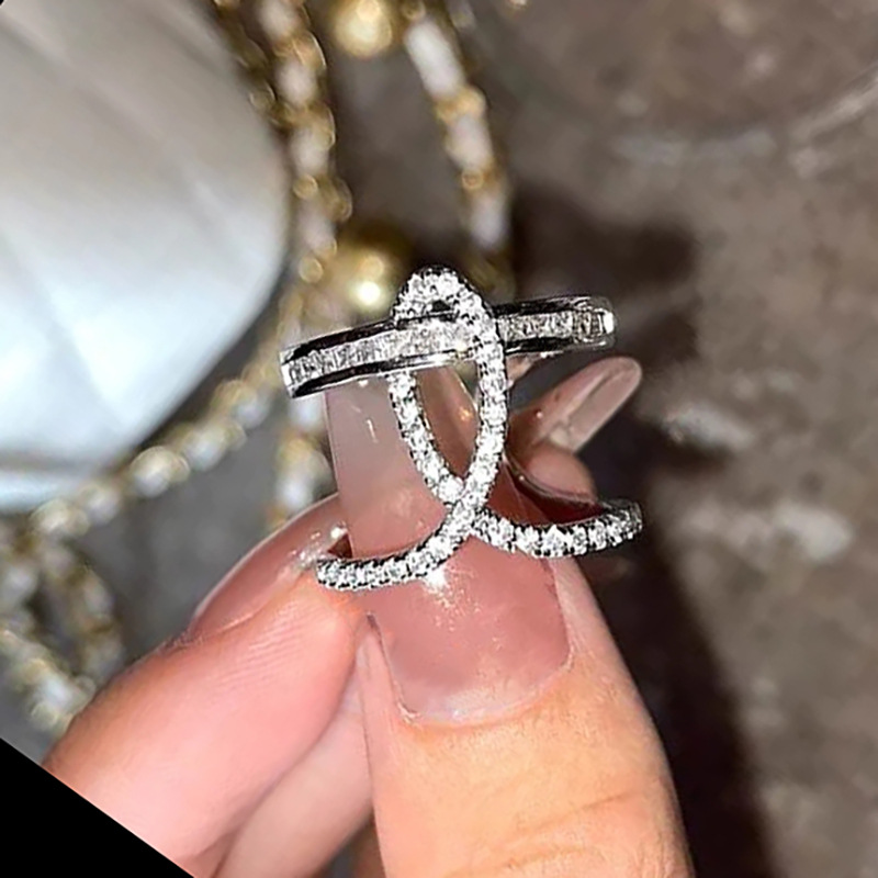 Bague de célébrité Internet capricieuse, bague d'index de conception de niche de luxe à lumière atmosphérique, bague de personnalité haut de gamme