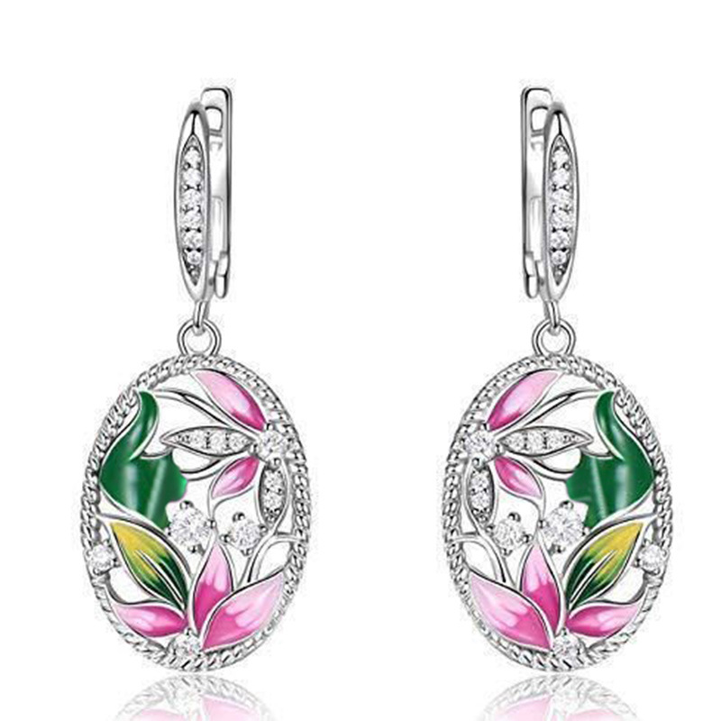 Boucles d'oreilles romantiques françaises à coller, boucles d'oreilles ovales en émail peint et diamant, boucles d'oreilles cadeau de Saint-Valentin