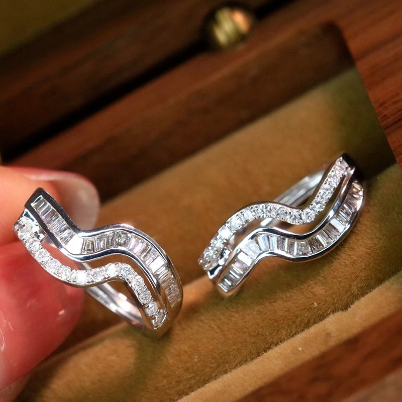 Boucles d'oreilles à enroulement linéaire, design de niche, boucles d'oreilles tendance pour femmes, boucles d'oreilles incrustées de zircons, nouvelle tendance