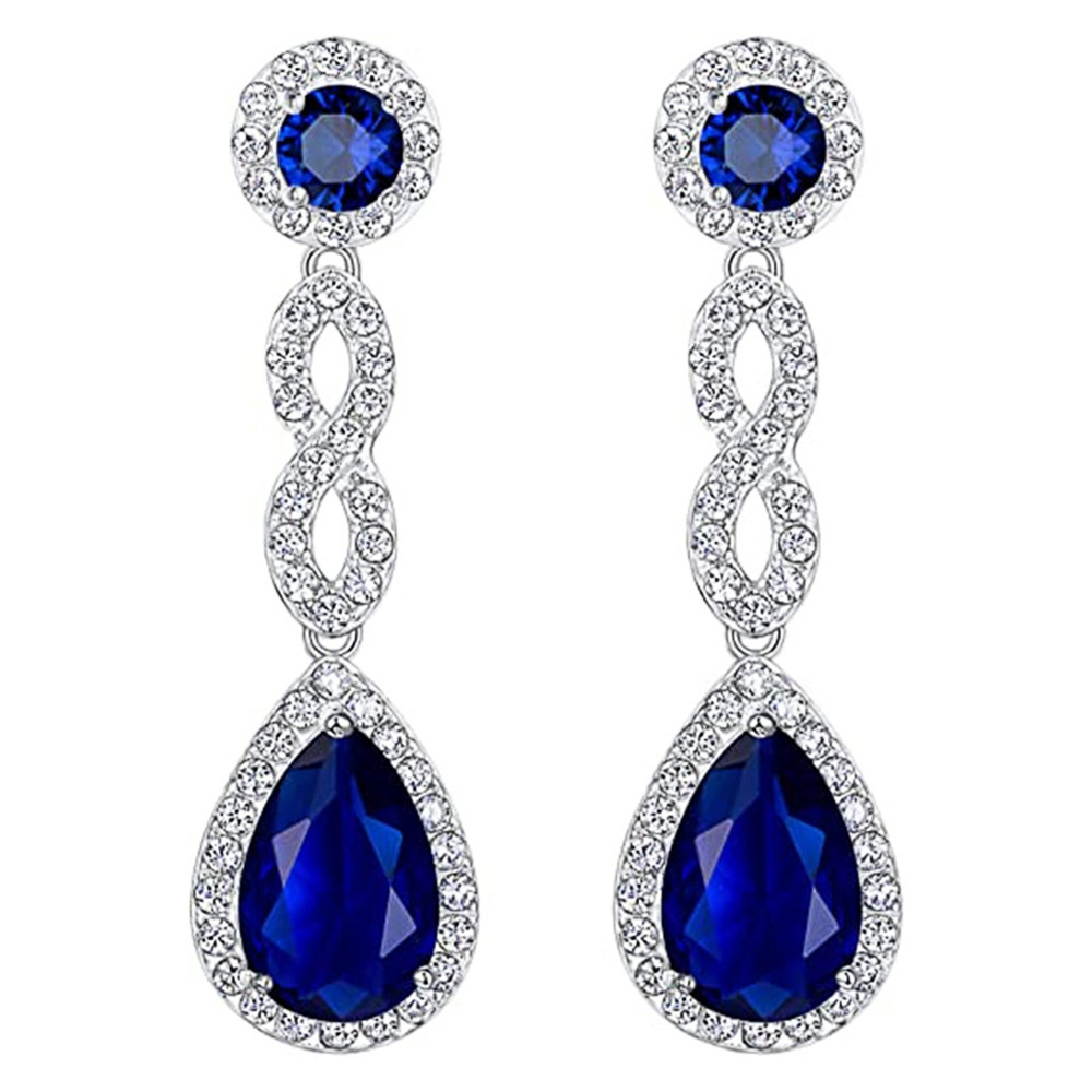Boucles d'oreilles classiques en forme de larme avec zircon bleu saphir, longues boucles d'oreilles pour mariées et tenues de soirée