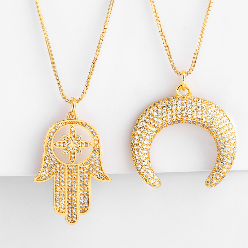 Collier pendentif lune diamant pour femme, bijou européen et américain, tendance et populaire, vente en gros, nkp48
