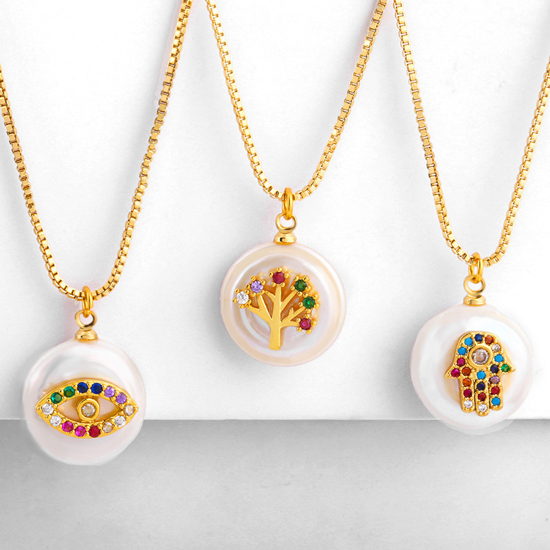 Collier style européen et américain, pendentif en perles baroques micro-incrustées de zircons, style filet rouge, nkp66