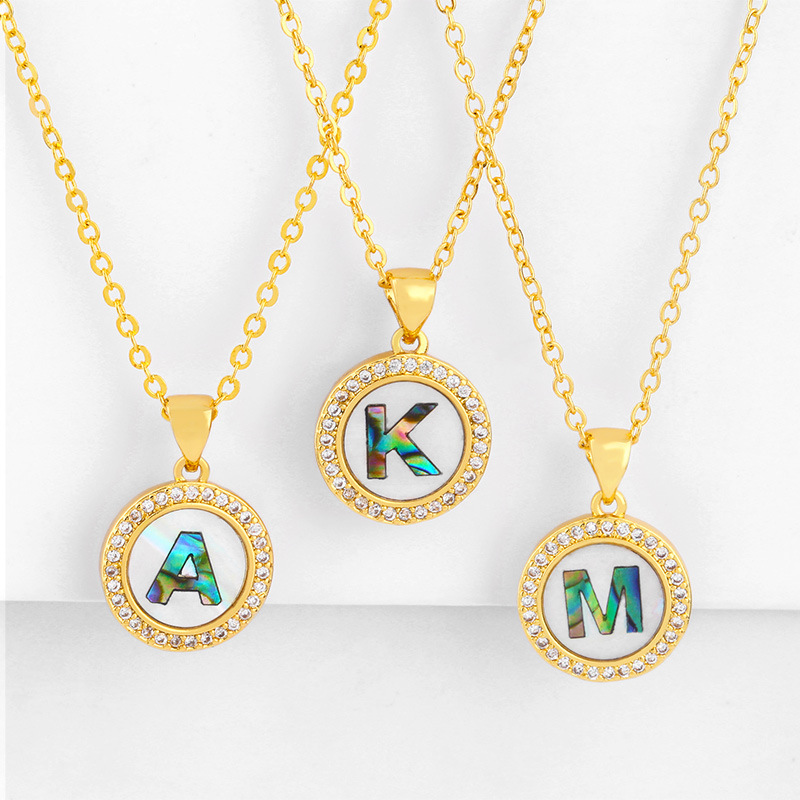 Collier rond en coquillage et diamants, 26 lettres, pour la Saint-Valentin, liquidation NKQ05