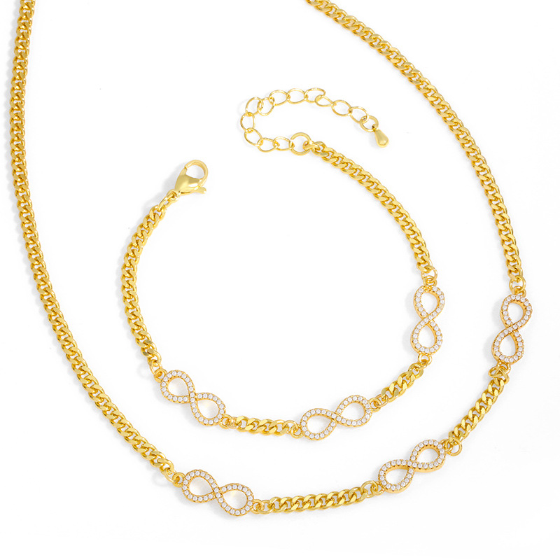 Bracelet en zircon incrusté en forme de 8, style européen et américain, chaîne cubaine rouge, collier pour femme, chaîne de cou, chaîne de clavicule, nku28