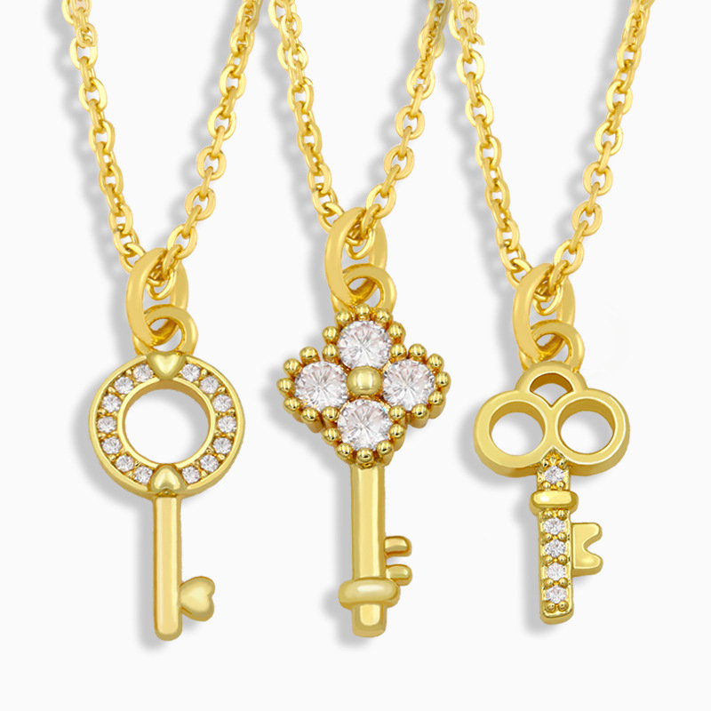 Collier pendentif clé en zircon micro-incrusté pour femme, accessoire de mode japonaise et coréenne, chaîne de clavicule, liquidation 2023, nkt95