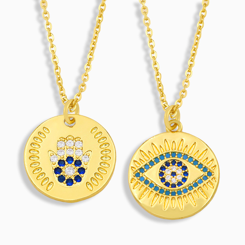 Collier de mode européenne et américaine en zircon coloré micro-incrusté, collier simple pendentif œil de palmier pour femme nkt86