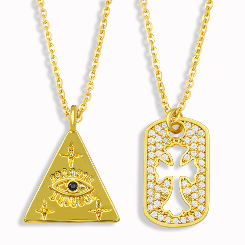 Collier rétro triangle mauvais œil, pendentif œil, chaîne de clavicule, bijoux européens et américains, liquidation nku07