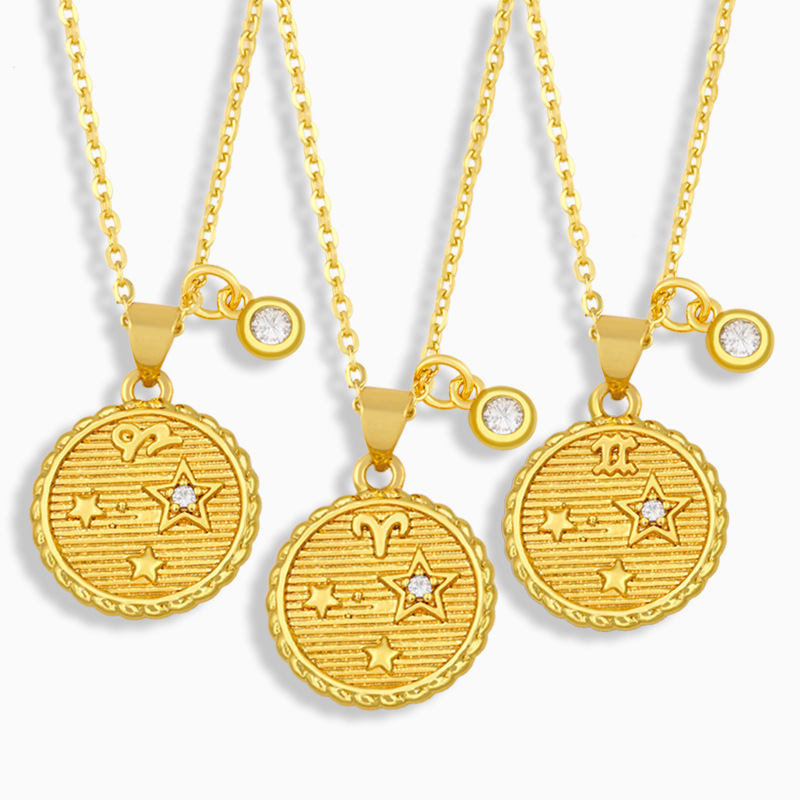 Collier pendentif 12 constellations européen et américain, modèle liquidation 2023, chaîne de clavicule en diamant rond pour petite amie, nkv18