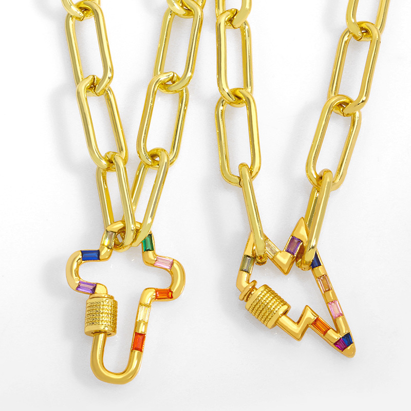Collier croix à chaîne épaisse pour femme, design de niche, collier tendance rond ovale éclair, nkv38